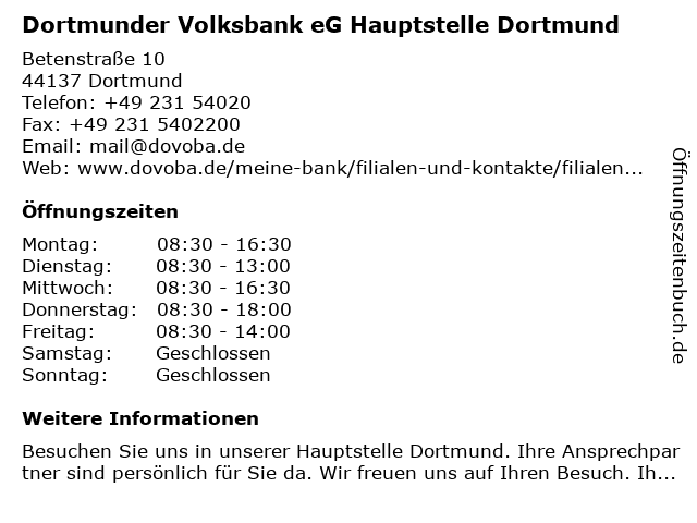 Ihre Dortmunder Volksbank eG steht Ihnen bei allen Fragen zum Online-Banking zur Verfügung. 10 44137 Dortmund Mitte. Dortmunder Volksbank Filiale Dorstfeld.